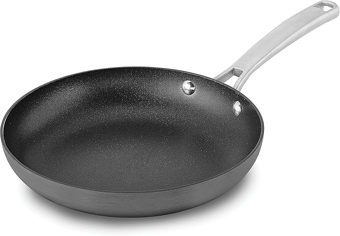 Cuisinart 12-Inch Deep Fry Pan w/cove is reliable and non-stick. It performs well as thousands and thousands of dollars’ worth of pans that people have been buying.